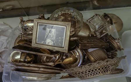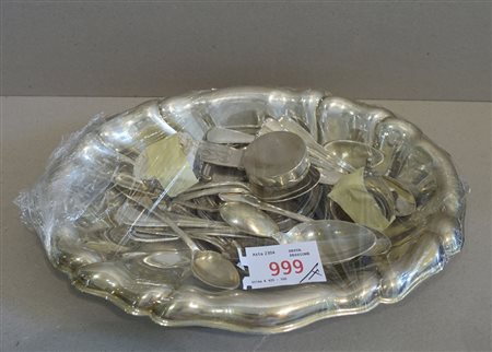 Lotto 0999 Coppa ovale in argento con posate e altri oggettini