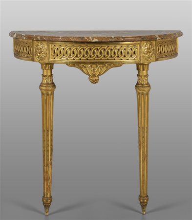 Lotto 1000 Consolina in legno intagliato e dorato piano in marmo sec.XIX