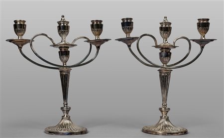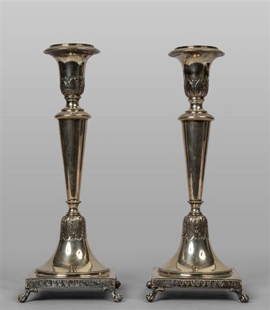 Lotto 1002 Coppia di candelieri in argento in stile Direttorio