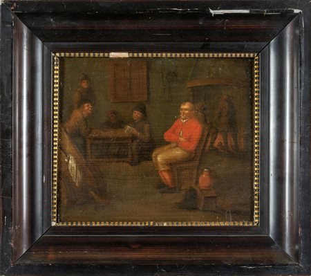 Lotto 1004 Scuola fiamminga sec.XIX 'Interno di osteria' olio su tavoletta