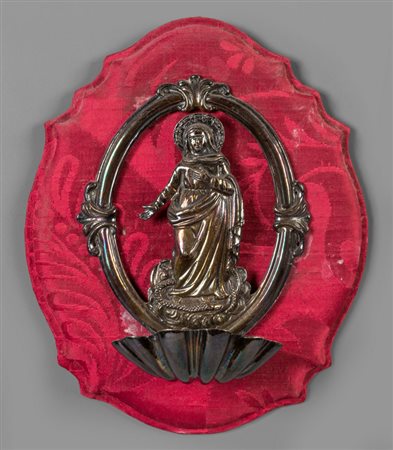 Lotto 1011 Acquasantiera in argento con al centro l'Immacolata sec.XVIII