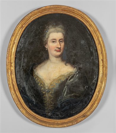Lotto 1014 Scuola piemontese sec.XVIII 'Ritratto di dama con orecchini' olio di forma ovale cornice coeva in legno dorato