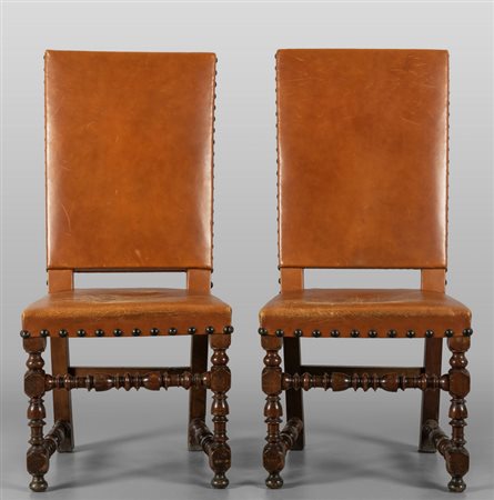 Lotto 1016 Coppia di sedie a rocchetto ricoperte in cuoio sec.XVIII