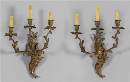 Lotto 1018 Coppia di bracci in stile Luigi XV a tre luci in bronzo dorato sec.XIX