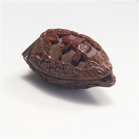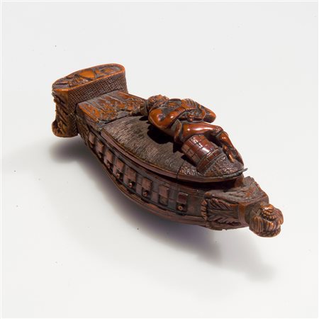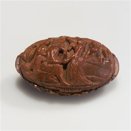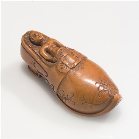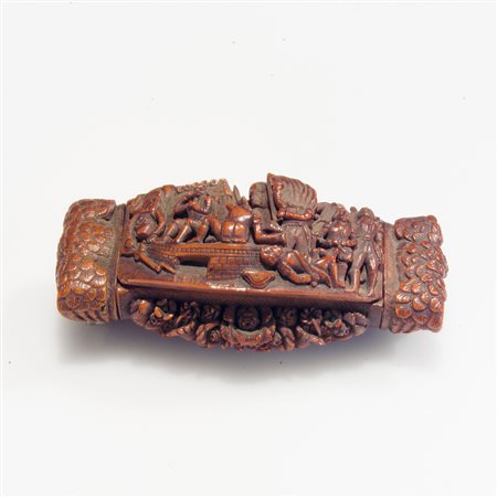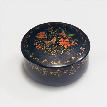 Lotto 1 Internamente laccato, sul coperchio è decorato a motivi di fiori e foglie. Dimensioni complessive 3.5x7x7 cm.
