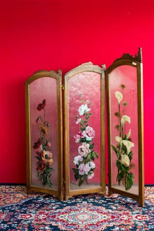 Lotto 16 Paravento a tre ante in noce intagliato