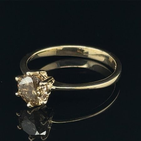 Lotto 8 ANELLO IN ORO GIALLO 14K 2.68 GR CON DIAMANTI PER 1.15 CT FANCY BROWN PUREZZA I1 TAGLIA 8 CERTIFICATO ID - RNG30411