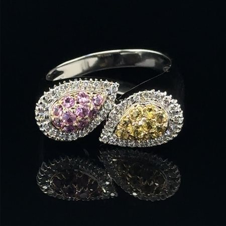 Lotto 12 ANELLO IN ORO BIANCO 14K 4.22 GR CON DIAMANTI PER E ZAFFIRO SAPP0.30 CT + CON DIAMANTI PER 0.30 CT D-F PUREZZA VS2 CERTIFICATO AIG - RNG30510