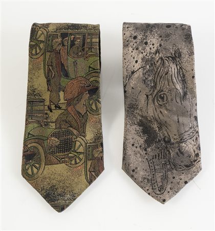 Lotto 14 FENDI Lotto composto da due cravatte in seta a fantasia. Una a fantasia sui toni del verde e del marrone. Cm 148. L'altra a fantasia sui toni dell'argento e del nero. Cm 144. Composizione 100% seta. Cadauna reca marchi ed etichette FF, Fendi Roma e Hand Made in Italy.