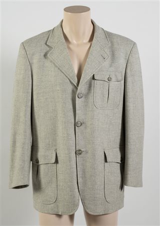 Lotto 15 FENDI Giacca da uomo in lana e cashmere sui toni del grigio melange. Taglia IT 52. Composizione 90% lana e 10% cashmere; composizione fodera interna 100% rayon. Reca tre tasche frontali e tre interne. Reca etichetta FF, Fendi uomo, Made in Italy.