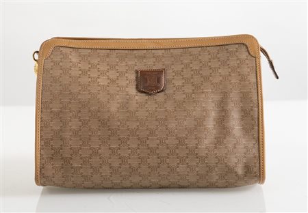 Lotto 20 CÉLINE Pochette in tela a fantasia Triomphe sui toni del nocciola. Cm 16x23,5x6. Dettagli in pelle. All'interno reca una tasca. Reca logo Triomphe e marchi Céline Paris, Made in Italy.