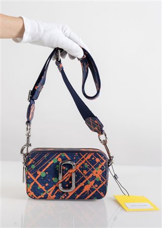 Lotto 190 MARC JACOBS Borsa a tracolla modello Snapshot Eclipse Multi in pelle martellata di vacchetta blu con macchie di pittura sui toni del blu, verde e arancione. Logo frontale e finiture in metallo argentato. Collezione 2021. Cm 12x18x6,5. Tracolla in tela della medesima fantasia regolabile e removibile. Spessore cm 5. Reca due scomparti, di cui con tasca interna, e una tasca posteriore. Reca marchi, etichetta e cartellino The Snapshot Marc Jacobs. Corredata da dustbag. (nuova)