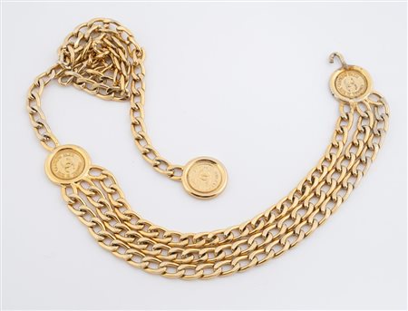 Lotto 201 CHANEL attr. Cintura a catena in metallo dorato. Lunghezza totale 107. Reca logo CC e scritta Chanel 31 Rue Cambon Paris. (lievi difetti)