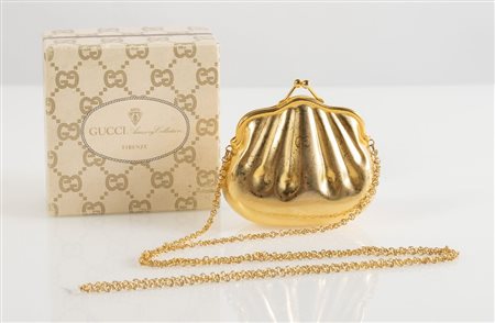 Lotto 203 GUCCI Accessory Collection Clutch con tracolla in metallo dorato con trama con monogram GG. Cm 9x10x5; tracolla lunghezza cm 120. Reca marchi GG e Gucci Accessory Collection Made in Italy. Corredata di scatola.