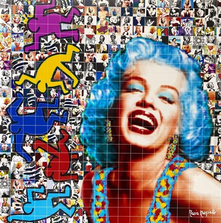 “Marilyn nell’atelier Keith Haring” 2022 Fotomosaico digitale montato su pannello Kapafix 1 cm e intagliato a mano, cm 50×50 Archivio opere digitali Maria Murgia su fotografia -