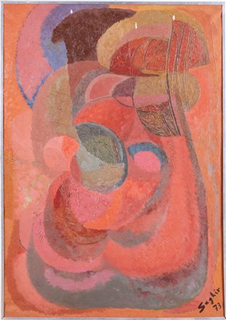 Lotto 5 Adel Saghir (Beirut 1930 - 2020), “Untitled/The Fortune Teller”, 1973.Olio su tela, firmato e datato in basso a destra, reca al retro firma, data, titolo e dimensioni, H cm 87x62