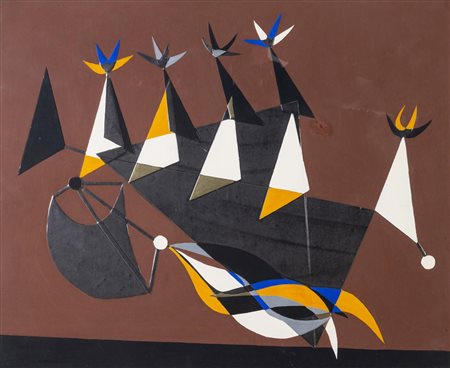 Lotto 9 Giulio Turcato (Mantova 1912 - Roma 1995), “Senza titolo”.Tecnica mista e collage su cartone, firmato in basso a destra “Turcato”, reca al retro iscrizione “-G. 56362138920 - Solo O”, H cm 100x69