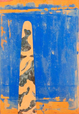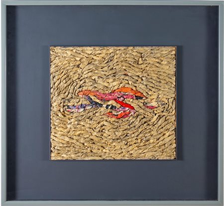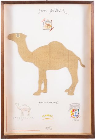Lotto 22 Fabio de Poli (Genova 1947), “Poor-Camel”, 1975.Tecnica mista con applicazioni su carta, firmata in basso al centro, reca al retro etichetta della Galleria Menghelli - Firenze con autore, titolo, tecnica, data e dimensioni, H cm 102x73