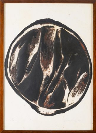 Lotto 14 Arnaldo Pomodoro (Morciano di Romagna 1926), “Senza titolo”, 1964.Litografia materica a colori su carta, firmata e datata in basso a destra, numero di tiratura in basso a sinistra 6/50, reca timbro a secco, Foglio H cm 70x50