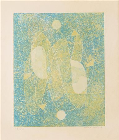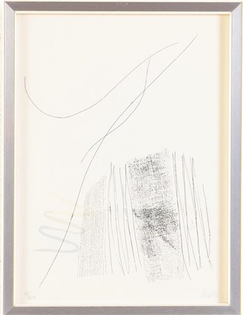 Lotto 21 Fausto Melotti (Rovereto 1901 - Milano 1986), “Senza titolo” da “Linee - Primo quaderno, 1975.Litografia colori su carta, firmata in basso a destra, numero di tiratura in basso a sinistra 93/100, H cm 21x23