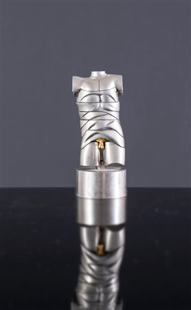 Lotto 24 Miguel Berrocal (Villanueva de Algaidas 1933 - Antequera 2006), “Mini David”, 1968.Scultura smontabile in lega di alluminio nichelata composta da 22 elementi, uno dei quali è un anello, reca sul braccio firma dell’artista e numero di esemplare 5601, H cm 14x6