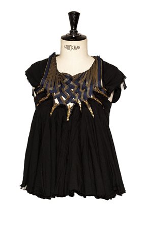 Top in black cotton fleece with collar formed by several gold metal zips that can be adjusted in their opening. Zip fastening at center back. Made in Japan in the 90s. Size S. Perfectly preserved.
