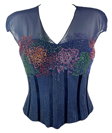 Navy blue boned top decorated with multicolored rhinestones. No label. Size IT 42. Excellent conditions.
