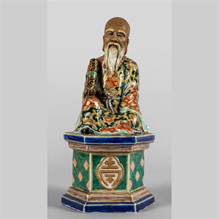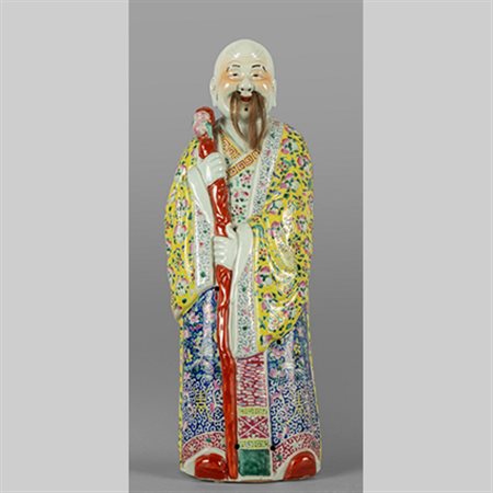 Lotto 0391 Grande figura di dignitario con bastone in porcellana policroma Cina fine sec.XIX