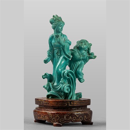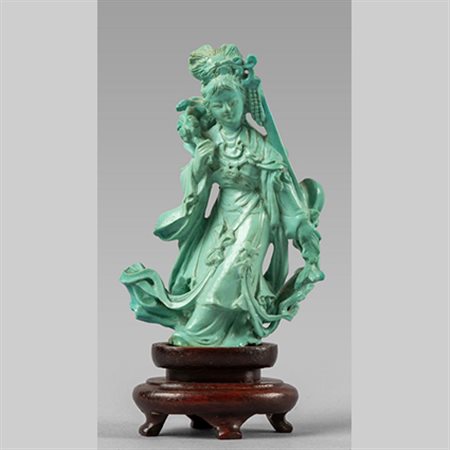 Lotto 0396 Scultura in turchese raffigurante guanin Cina sec.XX