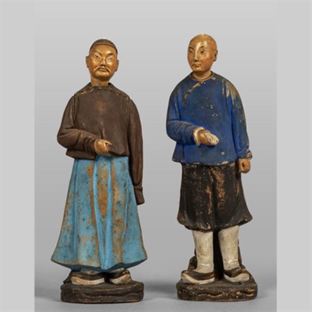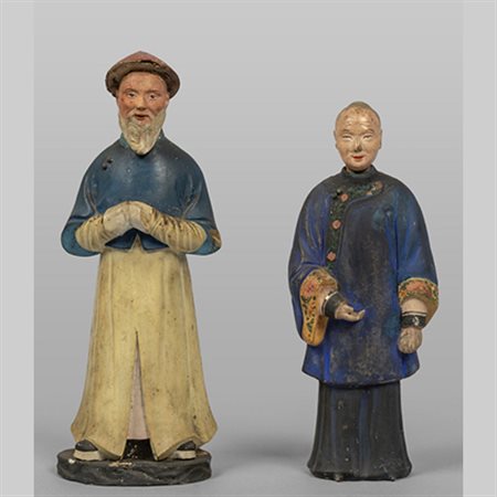 Lotto 0401 Due figurine in terracotta policroma con testine movibili Francia sec.XVIII