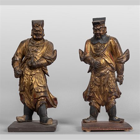 Lotto 0403 Coppia di guerrieri in legno scolpito e dorato Cina sec.XIX