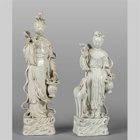Lotto 0404 Due guanin in porcellana bianca Cina sec.XX