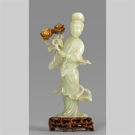 Lotto 0408 Guanin con fiore di loto in giada Cina sec.XX