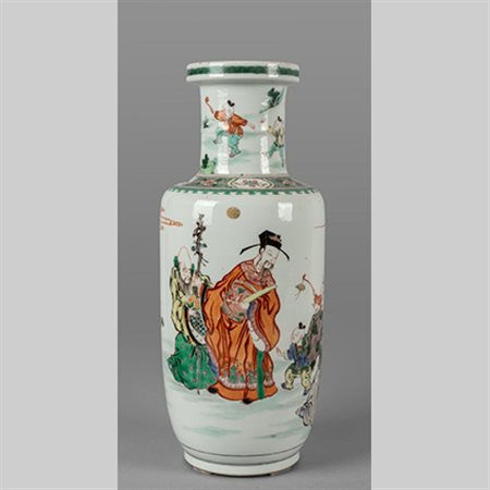 Lotto 0411 Vaso in porcellana policroma decorato a figure in un paesaggio Cina dinastia Kang Xi sec.XVIII