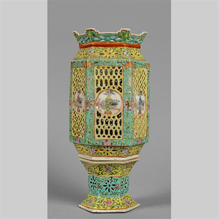 Lotto 0412 Lanterna in porcellana decorata in policromia Cina fine sec.XIX