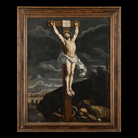 Lotto 40 Charles Le Brun (Parigi, 1619 – 1690), ambito di, Crocifissione Olio su tela, dimensioni ext.121x99, int. 104x81 cm.
