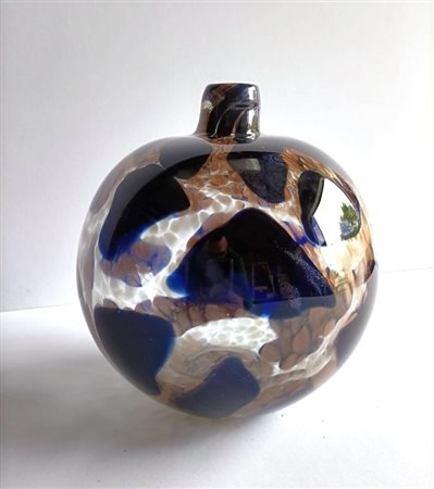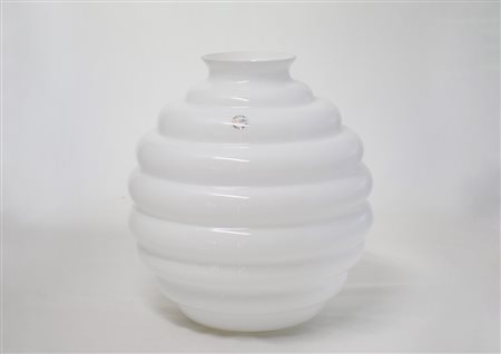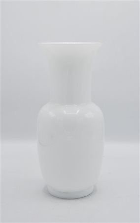 In vetro soffiato opalino nei toni bianco, corpo globulare e breve collo