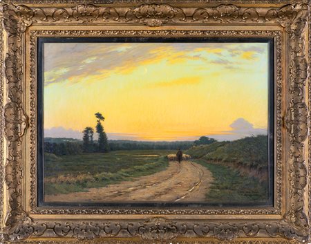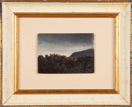 Lotto 498 Anonimo del XIX secolo Paesaggio all'imbrunire Iscritto al verso, a matita, "A. Fontanesi" olio su tavola cm 10x13,5 - con cornice cm 25x31