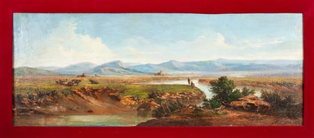 Lotto 507 Enrico Coleman Roma 1846-Roma 1911 Le campagne Romane Firma in basso a destra. Olio su tela cm 40x100 - in cornice cm 49x109