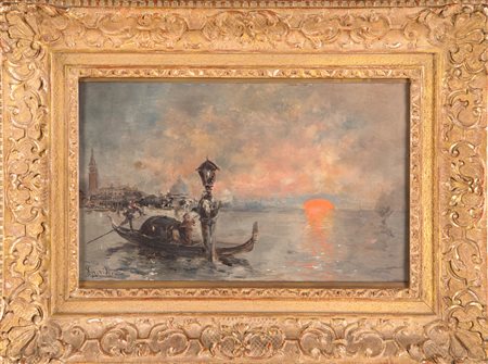 Lotto 515 Ignace Spiridon Roma 1848-Nizza 1930 Tramonto in laguna Firmato in basso Olio su tavoletta cm 21x35 - con cornice cm 37x50