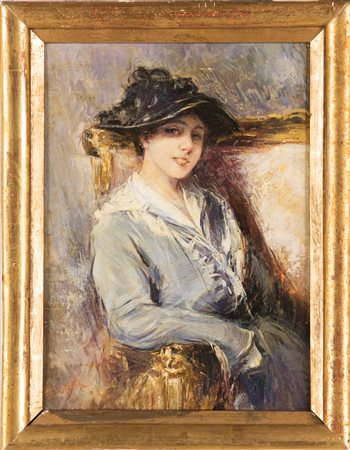 Lotto 517 Pietro Scoppetta Amalfi 1863-Napoli 1920 Ritratto di signora con cappello Firmato in basso a sinistra "P. Scoppetta" Olio su cartone cm 36x26 - con cornice 43x34