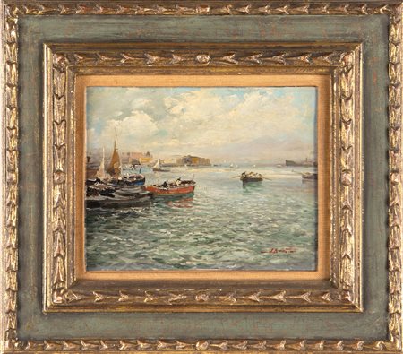 Lotto 519 Ezelino Briante Napoli 1901-Roma 1971 Golfo di Napoli Firma in basso a destra "E. Briante" Olio su cartone cm 20x25 - con cornice cm 37x42