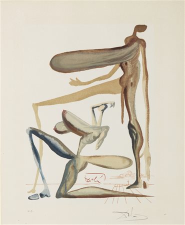 Lotto 22 DALI' SALVADOR (1904 - 1989) La Divine Comédie - Purgatoire 22 - La prodigalité. 1963. Xilografia. Cm 26,00 x 33,00. H.C. Tiratura e firma in basso a matita. Firma a stampa in basso al centro. Libro a cura di Les Heures Claires. Stampatore: Jacquet & Taricco. Al retro cartiglio descrittivo Edizioni Bora. Pubblicazioni: Michler & Löpsinger 1094.