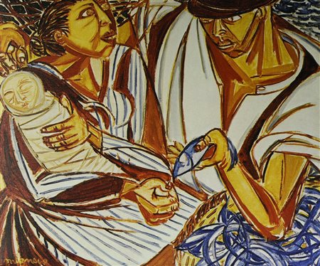 stampa su tela con ritocchi in acrilico postumi non originali, cm 80x98