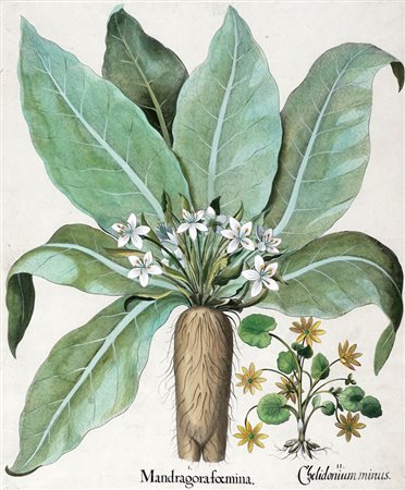Lotto 16 Basilius Besler, Quattro tavole da Hortus Eystettensis. 1613. Bulino, tempera e acquerello a colori. mm 470/472x390/394. Foglio: mm 505/520x405/410. 1) Mandragora foemina; 2) Fritillaria pyrenaa..., Fritillaria polyanthos lutea, Fritillaria minor...; 3) Epipactis latifolia, Palma Christierecta variegata,...4) Arbor Iuda, Unifolium, Hepatica Palustris, Lunaria Botrytis. Da Hortus Eystettensis, monumentale florilegio botanico in 367 tavole raffiguranti più di 1000 specie, edito per la prima volta nel 1613 a cura del farmacista Basilius Besler (Norimberga 1561-1629). Anche se l'opera viene associata al suo nome, si deve a Besler unicamente la curatela e l'organizzazione dei numerosi artefici chiamati a realizzare l'impresa commissionatagli nel 1611 da Johann Konrad von Gemminge principe arcivescovo di Eichstätt: i disegni dal vero si devono a Sebastian Schedel (1570-1628), le prime lastre a bulino vennero incise da Wolfgang Kilian (1581-1662) e aiuti, la coloritura a mano venne commissionata al colorista di Norimberga Georg Mack e alla sua famiglia, le descrizioni botaniche si devono infine, almeno in parte, a Ludwig Jungermann (1572-1653). Il volume conta tre edizioni, la prima nel 1613 in due versioni, una commerciale (con testo al verso) e una di lusso (con testo in foglio separato e carta filigranata), la seconda nel 1640, la terza prevista nel 1713 per il centenario venne di fatto eseguita nel 1750. Bellissime prove, stampate su carta vergellata con filigrana "serpente" visibile su tutti i fogli, dall'edizione di lusso del 1613 priva di testo al verso. Bibliografia: N. Barker, Hortus Eystettensis. The Bishop's Garden and Besler's Magnificent Book, London 1994. A. Carroll, The Hortus Eystettensis: How Paper Type Can Help Decipher Printing History, in «The Papers of the Bibliographical Society of America», 103, 3,September 2009, pp. 391-400. (4)