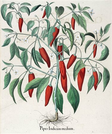 Lotto 22 Basilius Besler, Quattro tavole da Hortus Eystettensis. 1613 [1640/1713]. Bulino, tempera e acquerello a colori. mm 470/472x390/394. Foglio: mm 525/560x420/440. 1) Piper Indicum rotundum maximum, Piper minimum Siliguis rotundis; 2) PIper Indicum mediuma; 3) Nigella peregrina floremultiplici, Dulcis amara flore albo, Dulcis amara flore coeruleo vulgatior. 4) Linum sylvestre flore coeruleo..., Tragopogon flore luteo, Tragopogon purpureum. Da Hortus Eystettensis. Bellissime prove, stampate su carta vergellata pesante dall'edizione con testo al verso. (4)