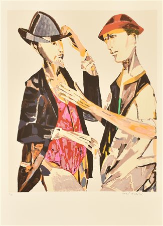 FIGURE CON CAPRETTO litografia su carta, cm 50x70; es. P.A.