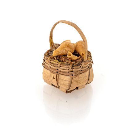 Cestino con frammenti in cera modellati come provole e caciocavalli cm 7x4 -