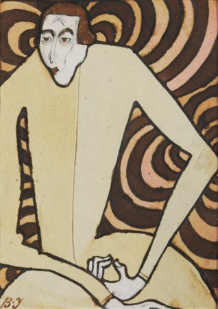 Lotto 4 Istvàn Balogh (1890 - 1956) Ritratto di uomo, 1912;Inchiostro col., gouache su carta, 9,3 x 6,5 cm, al retro etichette "Museul de arts
