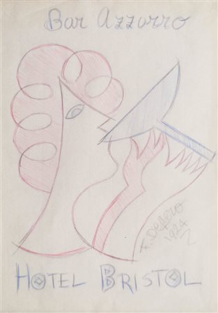 Lotto 6 Fortunato Depero (Fondo 1892 - Rovereto 1960) "Bar Azzurro - Hotel Bristol", 1924;Matita e matite rossa e blu su carta, 29,5 x 21 cm